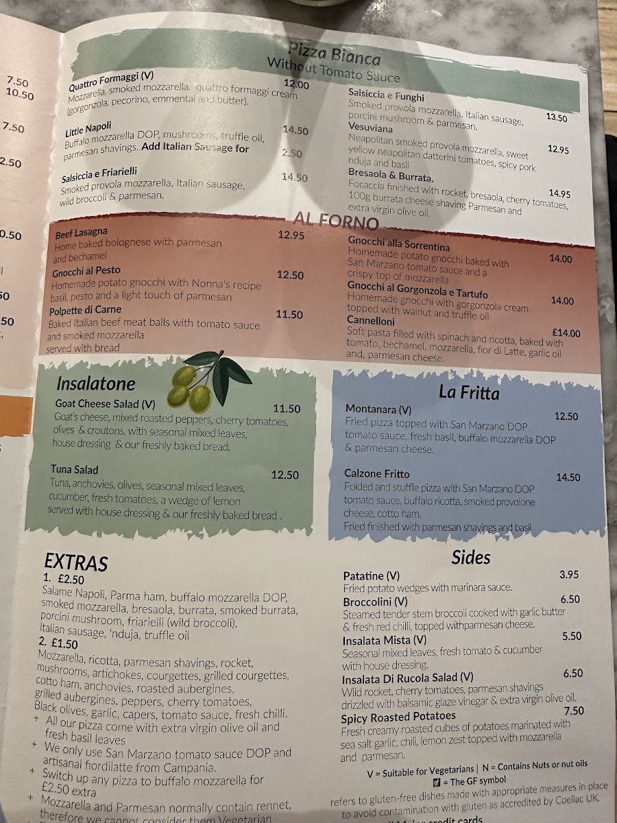 Start with the tantalizing La Fritta, featuring the mouth-watering Montanara (£12.50) and Calzone Fritto (£14.50). Then dive into classic pizzas like the Quattro Formaggi (£12.00) and Salsiccia E Funghi (£14.50), where the crispy, wood-fired crust shines with fresh ingredients.